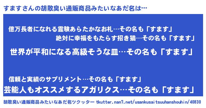 すますさんの胡散臭い通販商品みたいなあだ名をツクッター!