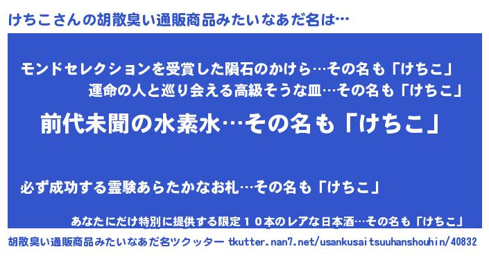 | ヒーロー風カッコイイあだ名 | 『ネオケチコ』『慈愛の使者けちこ』 |