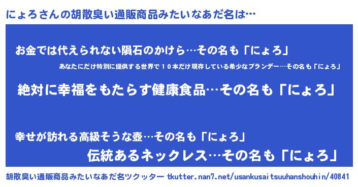 | 意味不明あだ名 | 『永久保存にょろ』『めかぶ科にょろ属』 |