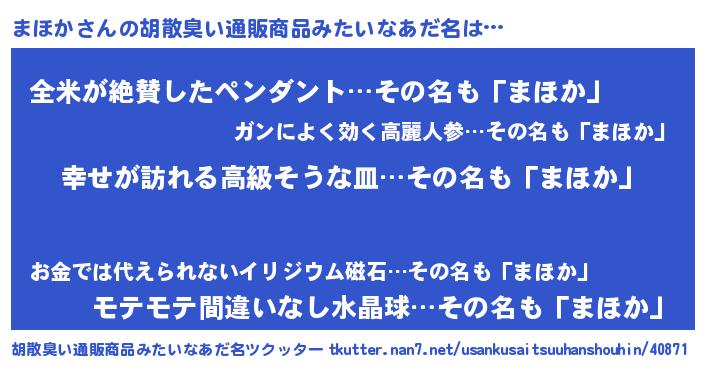 | 意味不明あだ名 | 『まほかフォーエバー』『ペロリンまほか』 |
