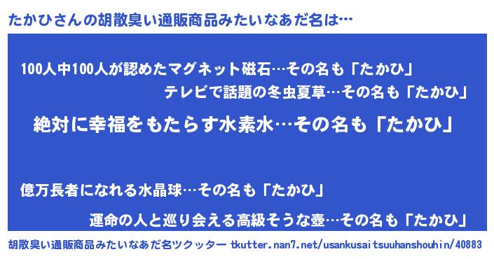 | ヒーロー風カッコイイあだ名 | 『ネオタカヒ』『愛の使者たかひ』 |