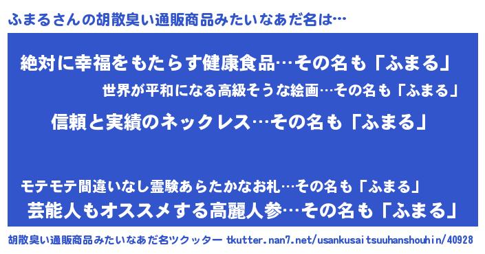 | 意味不明あだ名 | 『とにかく怪しいふまる』『自称ふまる』 |
