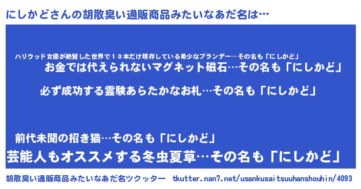 | ヘコむあだ名 | 『にしもー』『にしかど(震え声)』 |