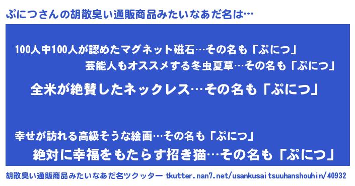 | 意味不明あだ名 | 『とにかく怪しいぷにつ』『自称ぷにつ』 |