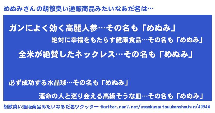 | 可愛いあだ名 | 『めっぬぃー』『めぬぷりん』 |