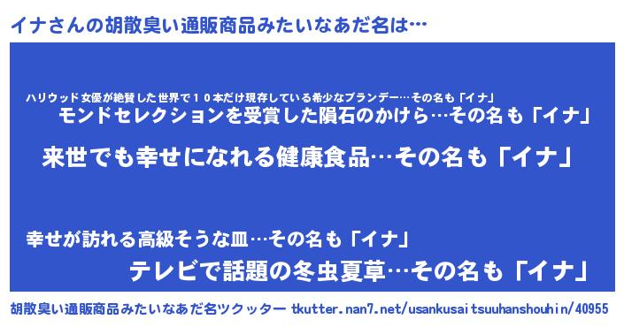 | 意味不明あだ名 | 『永久保存イナ』『住所不定無職イナ(12歳)』 |