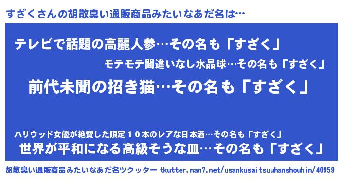 | ヘコむあだ名 | 『すざく(笑)』『つくし』『すざにー』 |