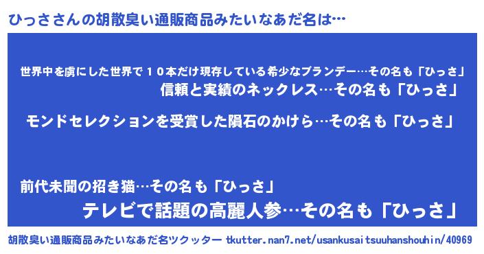 | ヘコむあだ名 | 『ひっっちょ』『ひっさ(遠い目)』 |