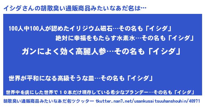 | ヘコむあだ名 | 『イシダ(小並感)』『つくし』 |