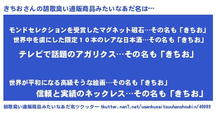 | 意味不明あだ名 | 『もやし科きちお属』『自称きちお』 |