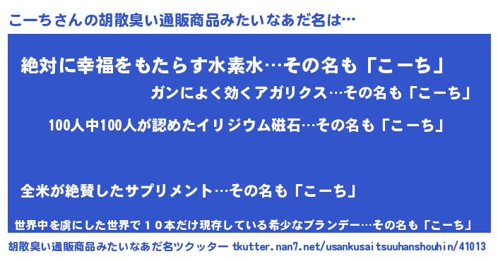 こーちさんの胡散臭い通販商品みたいなあだ名をツクッター!