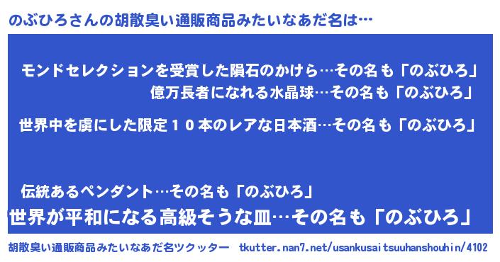 | ヘコむあだ名 | 『なまこ酢』『のぶもー』 |