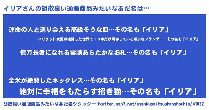| 意味不明あだ名 | 『ペロリンイリア』『イリアフォーエバー』 |