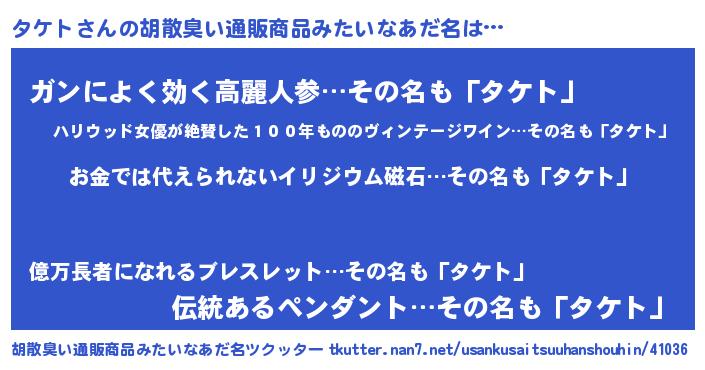 タケトさんの胡散臭い通販商品みたいなあだ名をツクッター!