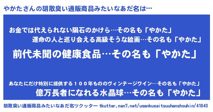 | ヘコむあだ名 | 『やかた(笑)』『やかもー』『つくし』 |