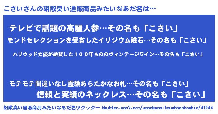 | 意味不明あだ名 | 『住所不定無職こさい(10歳)』『自称こさい』 |