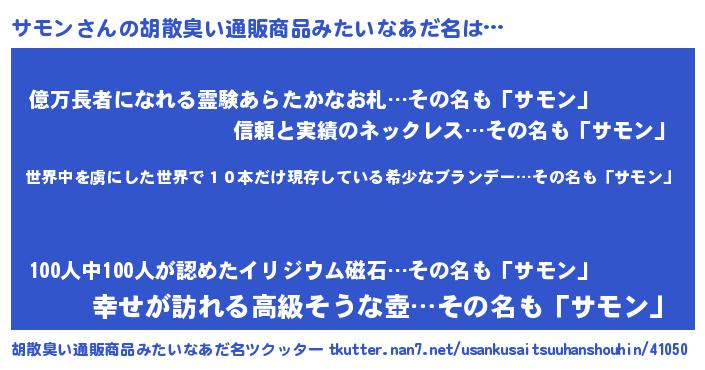 | 意味不明あだ名 | 『住所不定無職サモン(77歳)』 |