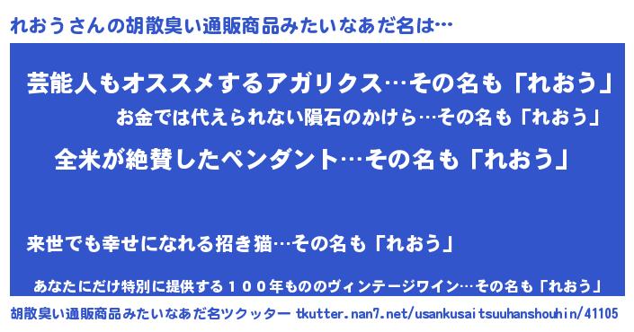 | 意味不明あだ名 | 『とにかく怪しいれおう』『自称れおう』 |