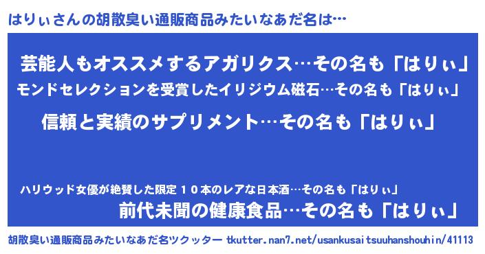 | 意味不明あだ名 | 『とにかく怪しいはりぃ』『自称はりぃ』 |
