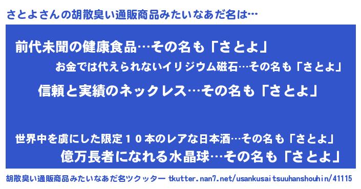 | 意味不明あだ名 | 『めかぶ科さとよ属』『永久保存さとよ』 |