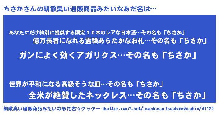 | 意味不明あだ名 | 『自称ちさか』『住所不定無職ちさか(86歳)』 |