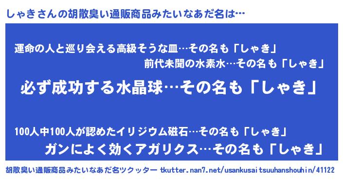 | ヒーロー風カッコイイあだ名 | 『スーパーシャキ』『ウルトラしゃきマン』 |