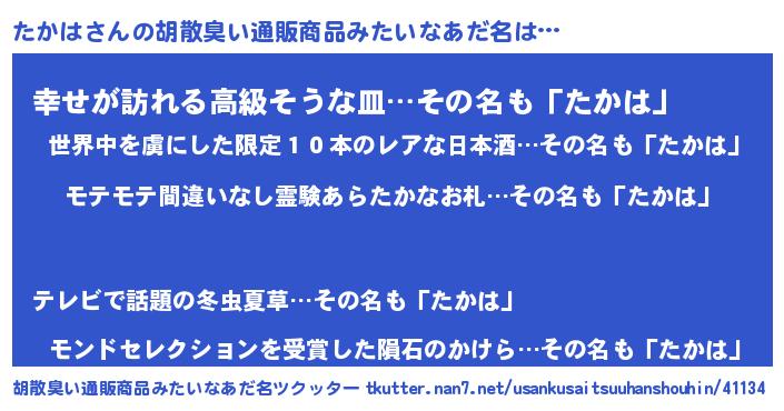 | ヘコむあだ名 | 『たかっふぃ~』『酢こんぶ』 |