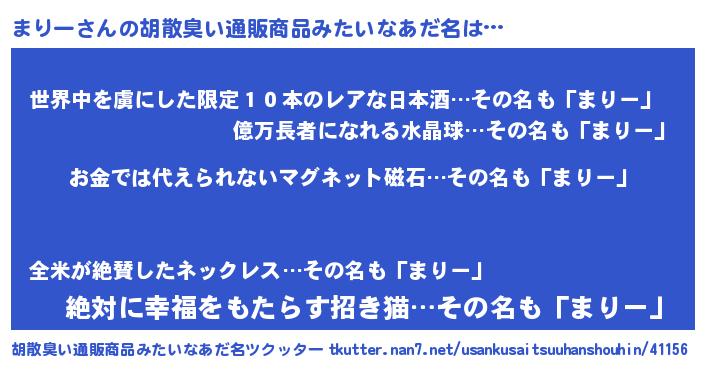 | ヘコむあだ名 | 『まりー(小並感)』『まりにゅー』 |