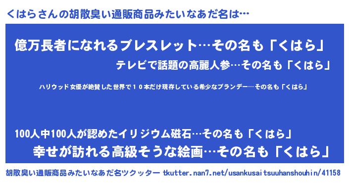 | 意味不明あだ名 | 『住所不定無職くはら(86歳)』『自称くはら』 |