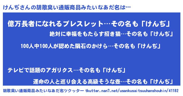 | ヘコむあだ名 | 『けんもー』『レバニラ』『けん太郎』 |