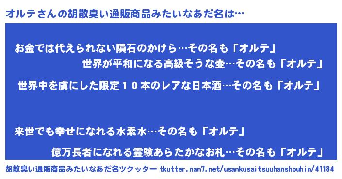 | 意味不明あだ名 | 『住所不定無職オルテ(62歳)』 |