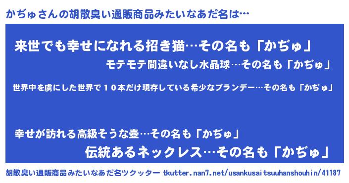 | 欧米人風あだ名 | 『かぢゅ・ステッグマイヤー』 |