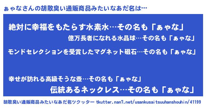 | ヘコむあだ名 | 『ぁゃな(笑)』『ぁゃっぺ』 |