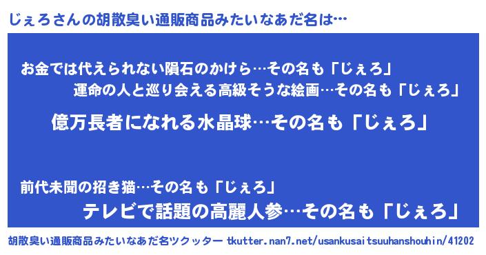 | 意味不明あだ名 | 『ペロリンじぇろ』『自称じぇろ』 |