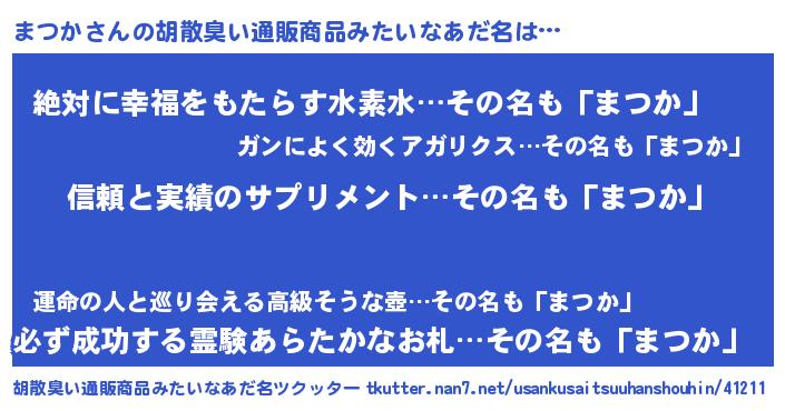 | ヘコむあだ名 | 『まつを』『まつか(遠い目)』『豆乳』 |