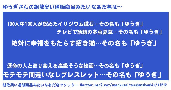 | ヘコむあだ名 | 『ゆうぎ(笑)』『ゆうふぇ~』 |