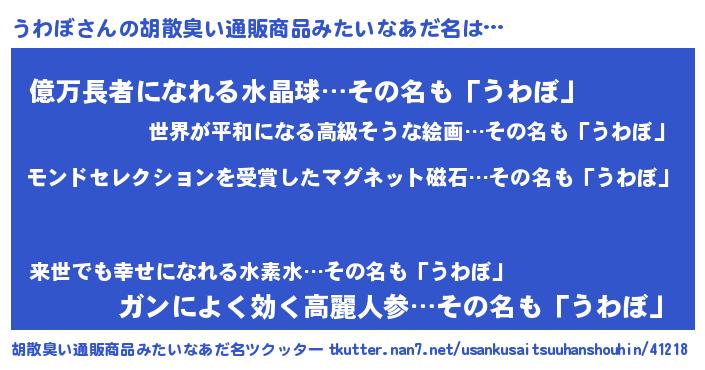 | ヒーロー風カッコイイあだ名 | 『慈愛の使者うわぼ』『スーパーウワボ』 |