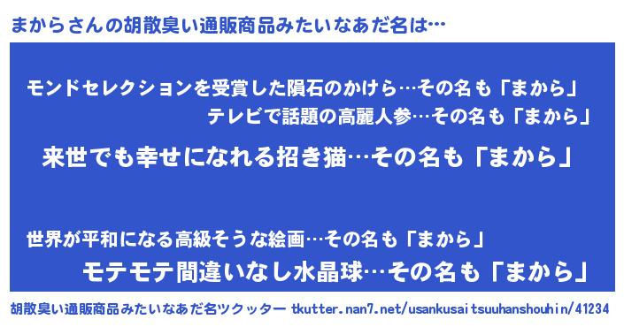 | 意味不明あだ名 | 『永久保存まから』『ペロリンまから』 |