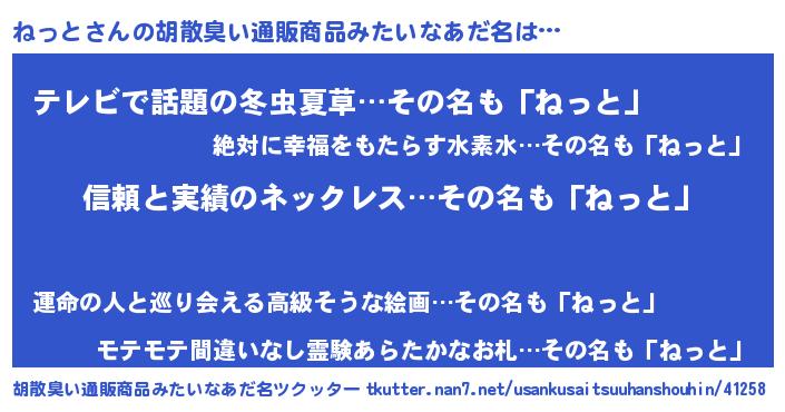 ねっとさんの胡散臭い通販商品みたいなあだ名をツクッター!