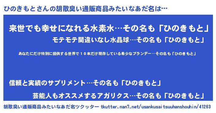 | ヘコむあだ名 | 『ひのきもと(苦笑)』『ひのふぇ~』 |