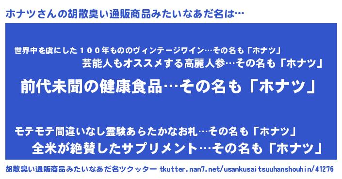 | ヘコむあだ名 | 『ホナツ(爆)』『ホナ太郎』『豆乳』 |