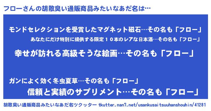 | 意味不明あだ名 | 『フローフォーエバー』『自称フロー』 |