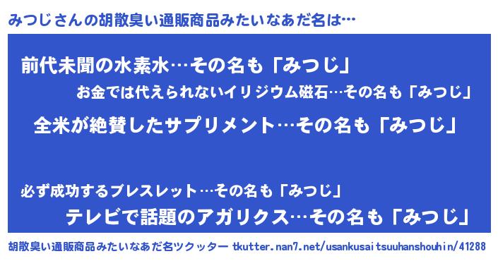 | ヘコむあだ名 | 『みつお』『みつじ(遠い目)』『豆乳』 |