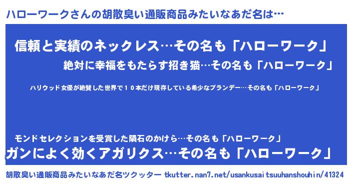 | 料理風あだ名 | 『ハローワークのカルパッチョ風』 |