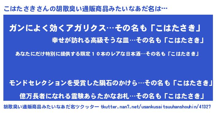 | ヒーロー風カッコイイあだ名 | 『仮面コハダー』『超時空戦士コハタサキ』 |