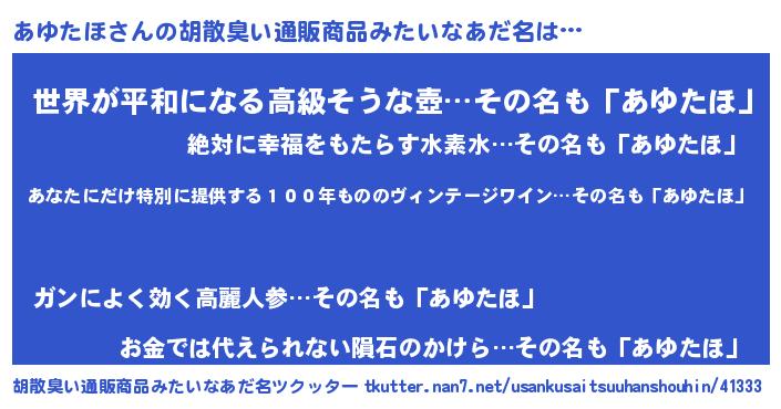 | 男性向けラノベタイトル風あだ名 | 『この素晴らしい世界にあゆたほを!』 |