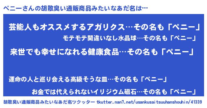 | ヘコむあだ名 | 『ペニー(爆)』『ペニにゅー』 |