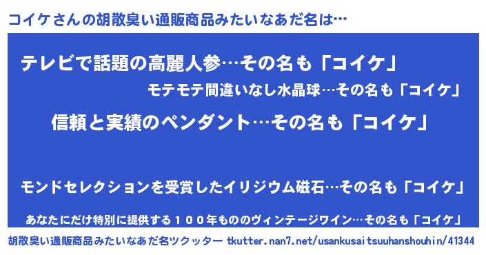 | ヒーロー風カッコイイあだ名 | 『魔戒騎士コイ』『サイバー戦士コイケ』 |