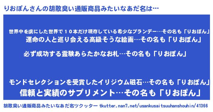 | 男性向けラノベタイトル風あだ名 | 『りおぽんの憂鬱』 |