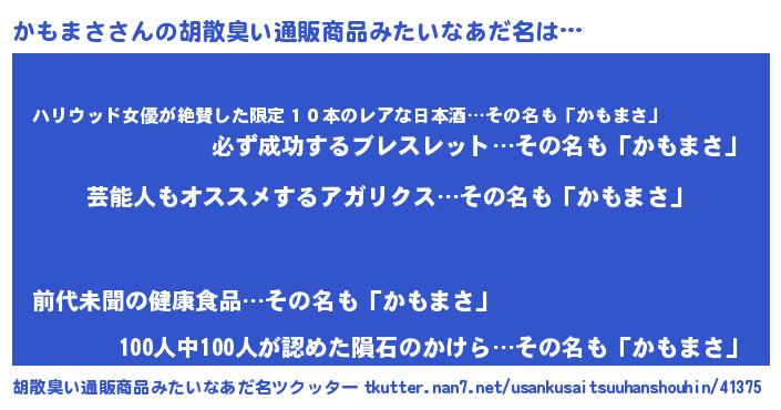 | 意味不明あだ名 | 『自称かもまさ』『ペロリンかもまさ』 |